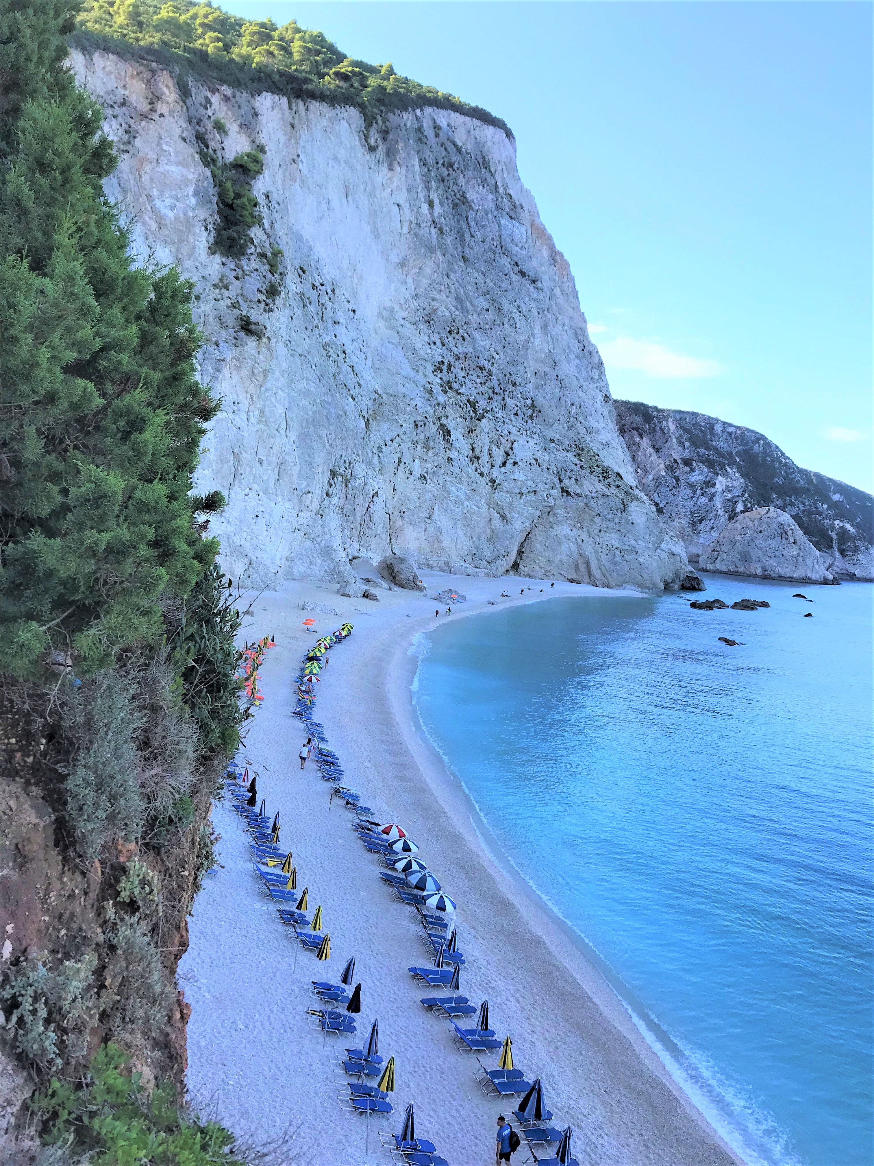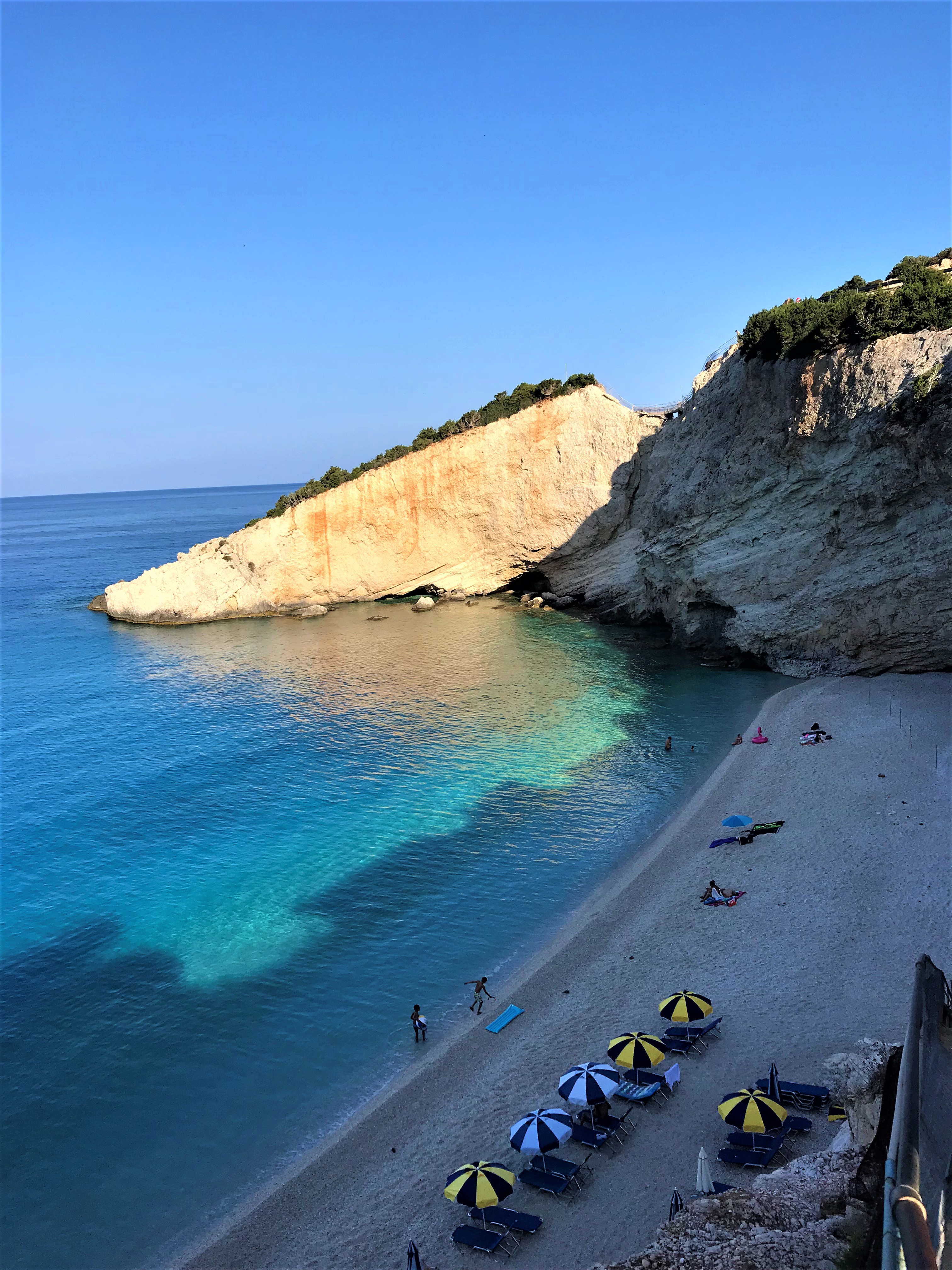 Porto Katsiki – este cea mai cunoscuta si frumoasa plaja! Se afla in partea de sud a insulei, iar drumul este destul de serpuit, dar frumos. Parcarea costa 5-7 euro pe zi. Imediat ce incepi sa cobori dinspre parcare, se arata plaja, cu un peisaj de vis! In prima parte a zilei, este umbrita de peretele stancos. Plaja nu este una cu nisip fin, ci cu pietris. Cu picioarele goale este destul de dureros, asa ca va recomand din nou “papuceii” pentru apa! 2 sezlonguri + umbrela costa 20€ / zi. Noi nu am rezistat toata ziua, fiind asa multa piatra, totul era incins iar caldura era greu de suportat. Daca ajungeti devreme, gasiti locuri pe langa stanci ce pot tine ceva umbra, dar trebuie sa va luati ceva gros de pus peste pietris. Plaja ne-a placut, dar este mult prea aglomerata pentru gustul nostru.