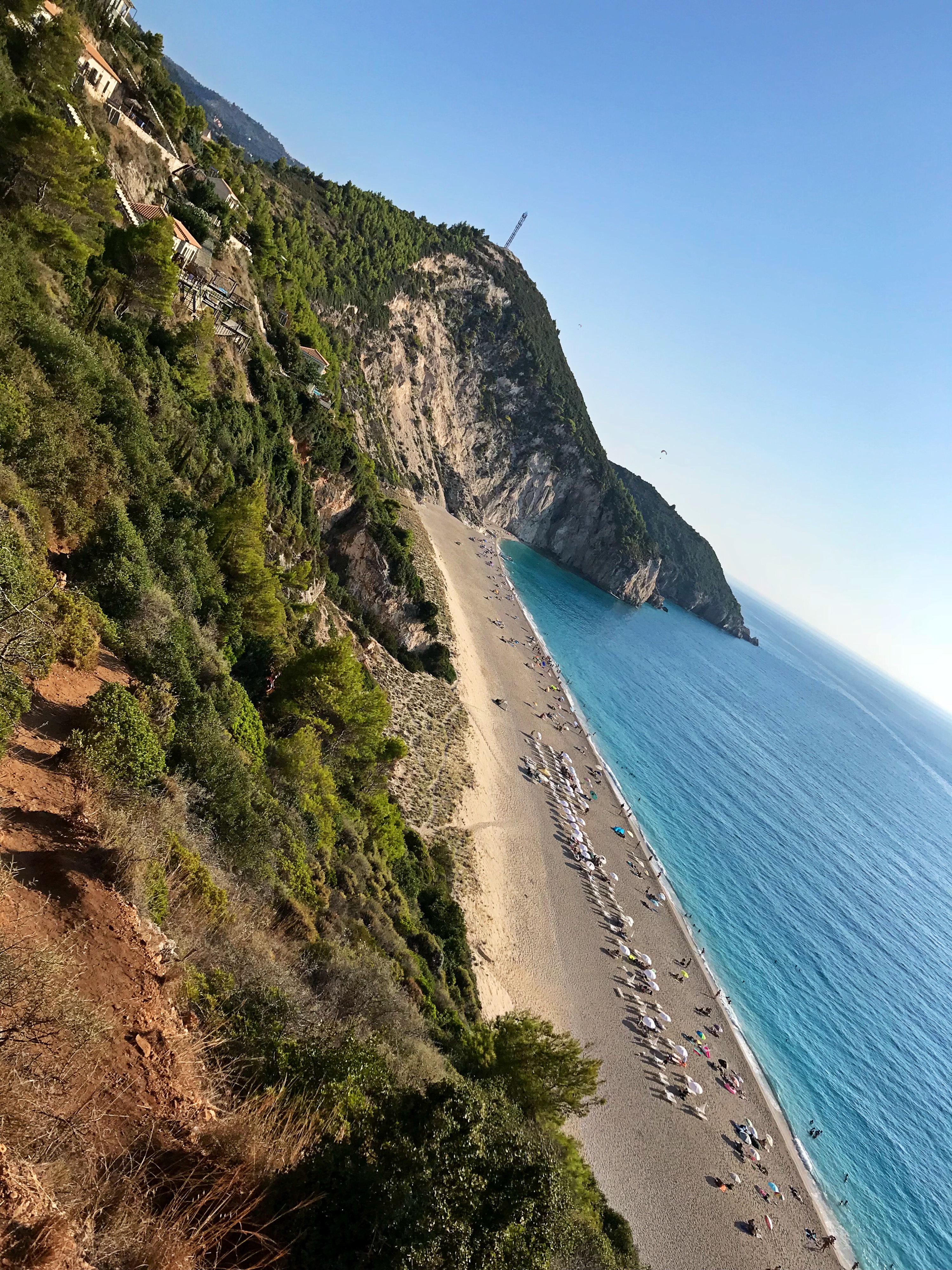 Plaja Milos. Pentru a ajunge, masina trebuie sa o lasati in Agios Nikitas. Din zona tavernelor din centru, se urca dealul, destul de abrupt. Musai incaltari comode! Si dupa ce ajungeti in varf, si credeti ca ati scapat, incepe coborarea care este si mai abrupta decat urcarea! Odihniti-va picioarele pentru intoarcere! :)) Plaja este absolut superba, mie mi-a placut mai mult decat Porto Katsiki, desi am simtit ca mi se topesc picioarele urcand, dar credeti-ma ca merita tot efortul! :)) Aici curentii sunt destul de puternici, iar apa se adanceste destul de repede.