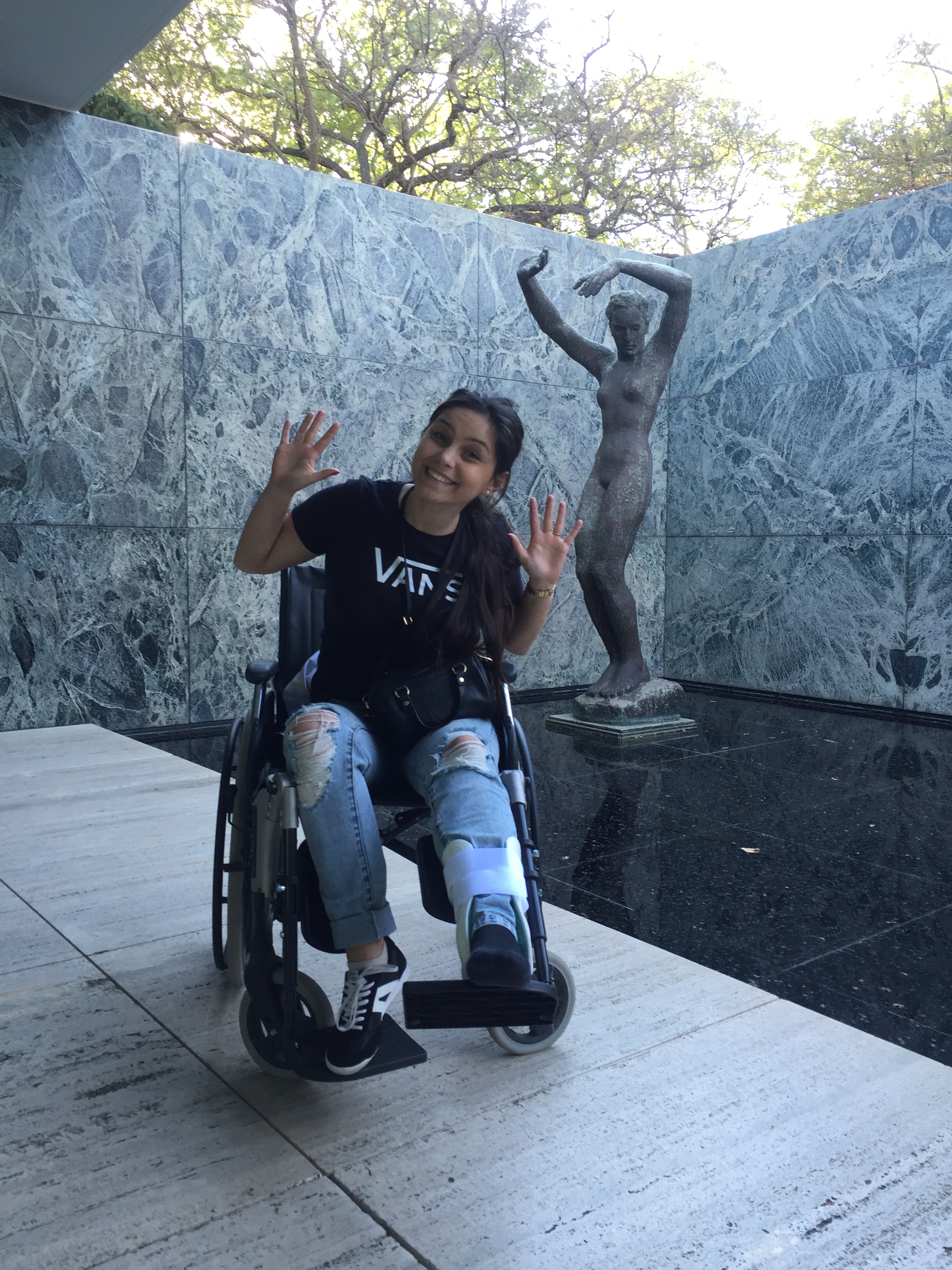A trebuit sa sunam la compania aeriana sa cerem serviciul de asistenta speciala pentru aeroport. Asta a constat in preluarea de la intrarea in aeroport, trecut printr-o cabina de security speciala, verificat picior (documente medicale) si imbarcarea in avion. La fel si cu debarcarea, controlul vamal pana la iesirea din aeroport. Pana aici a fost usor, sa zicem. De aici sotul meu a trebuit sa faca tot! Din aeroport am luat un autobuz, eu in carje fiind, care ne-a lasat chiar langa hotel. Dupa zbor si efortul de mers in carje cu piciorul in jos, (nici nu se punea problema sa ating piciorul, dar sa mai si calc pe el, cum mi s-a spus), s-a umflat destul de rau, durerile erau mari, asa ca am decis ca efortul meu sa fie minim pe perioada sederii. Am cerut la hotel un scaun cu rotile (se gasesesc si de inchiriat), sotul s-a inarmat cu rabdare si putere de impins, si a inceput aventura!