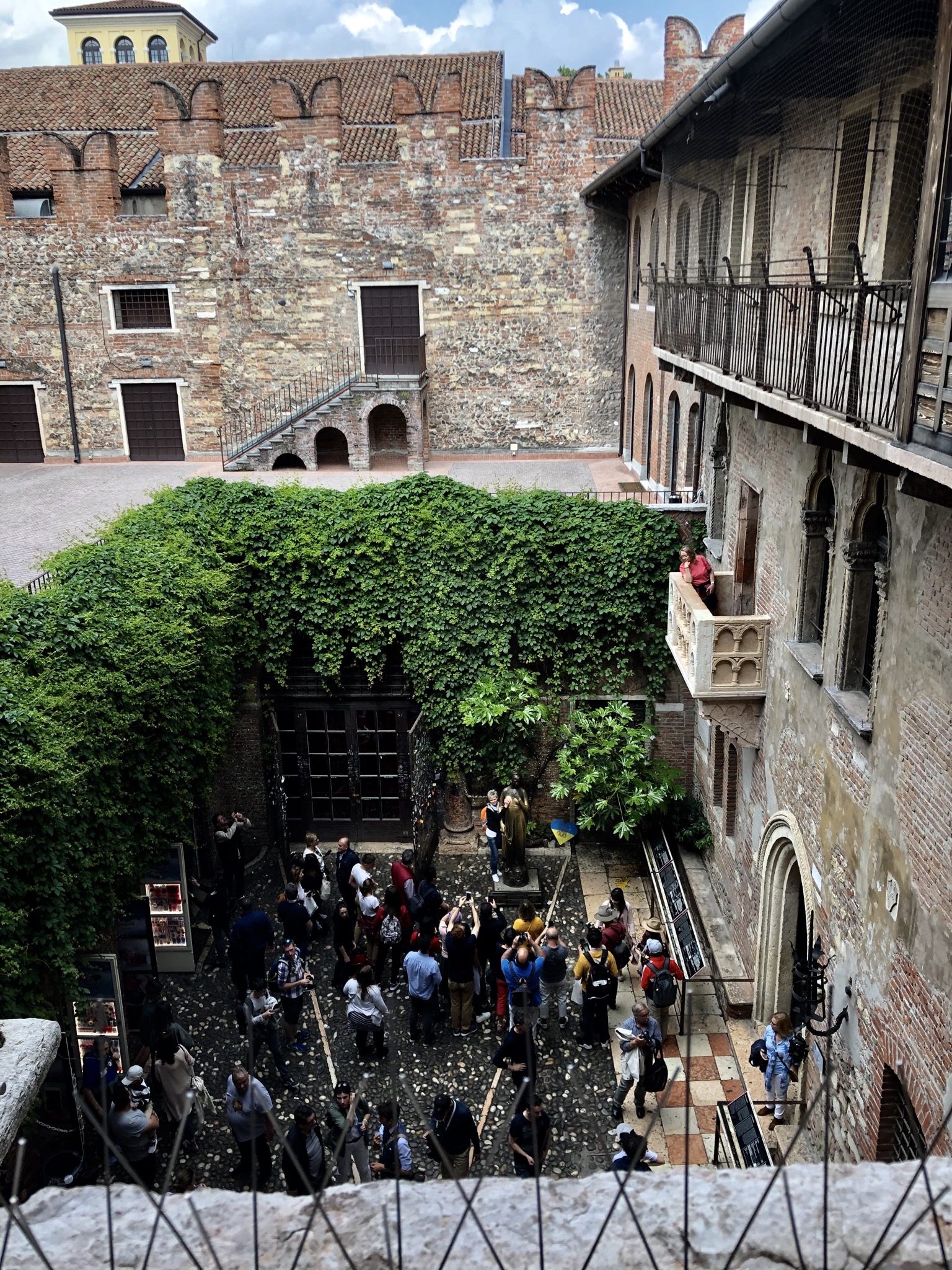Casa di Giuletta – Balconul Julietei este cel mai cunoscut obiectiv in Verona. Ca sa ajungi aici va trebui sa iei la pas stradutele mici si cochete din centru. Nu te grabi sa ajungi, ai ce sa admiri pe drum! Intrarea se face printr-un gang mic, cu peretii plini de semnaturi, declaratii si promisiuni ale indragostitilor ce au trecut pe acolo. Ca sa ajungi in curtea in care se afla statuia si balconul Julietei nu costa nimic, dar daca vrei sa ajungi exact in balconul celebru, trebuie sa platesti un bilet care costa 8 euro/pers.