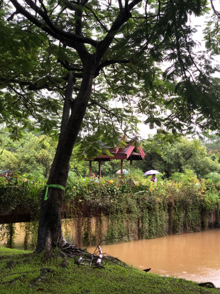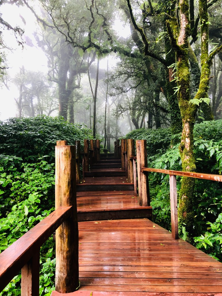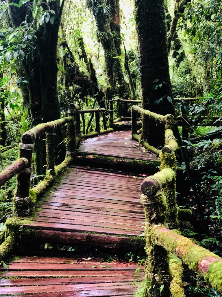 Doi Inthanon National Park  – este varful cel mai inalt din Thailanda (2600m). Aici am avut nevoie de hanorac, pentru ca temperatura a coborat sub 17 grade. Ploaia tocmai se oprise, norii inca erau josi, asa ca nu am putut sa beneficiem de privelistea asupra Chiang Mai-ului asa cum vazusem in poze. Oricum atmosefera creeata de ploaie te facea sa te simti ca intr-un film. Jungla si pasarelele care ciripeau timid, mi-au umplut sufletul de liniste si bucurie.