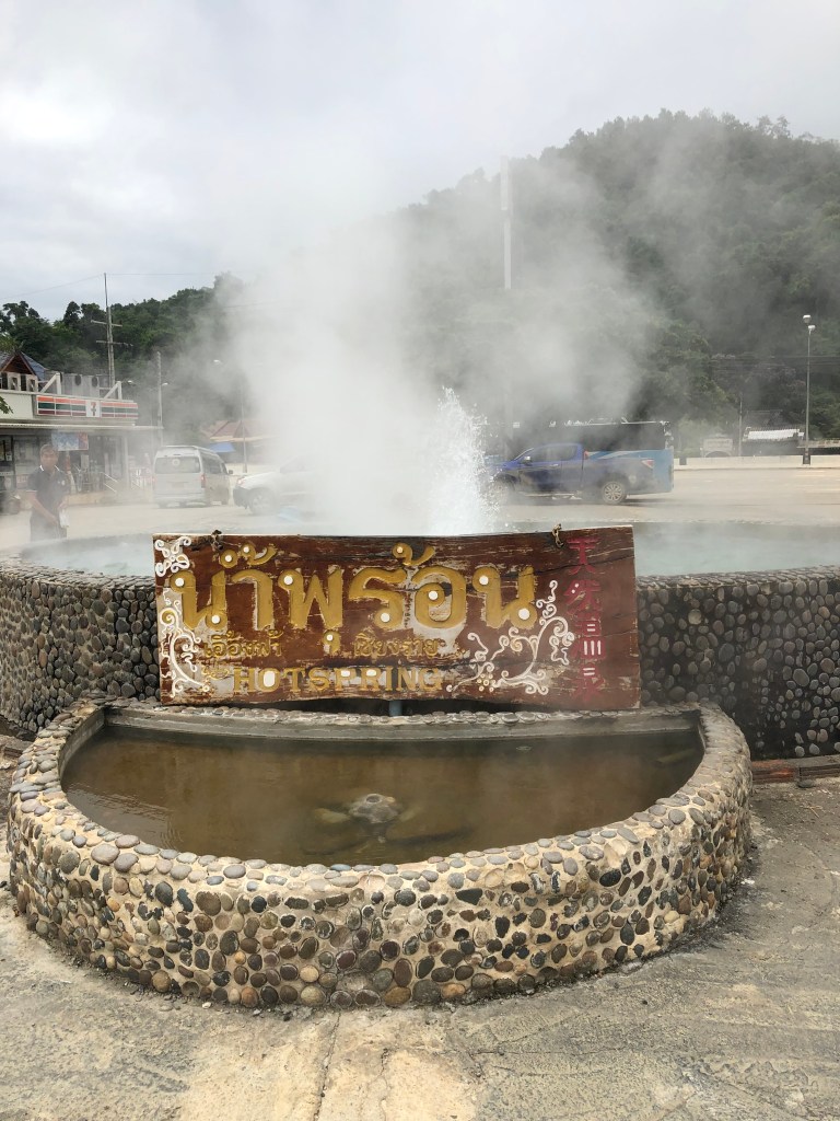 Prima oprire a fost la Mae Chedi Hot Springs. Aici apa termanala este atat de fierbinte incat poti fierbe un ou. Poti chiar sa cumperi unul, sa il pui in cosuletul special si sa il fierbi!