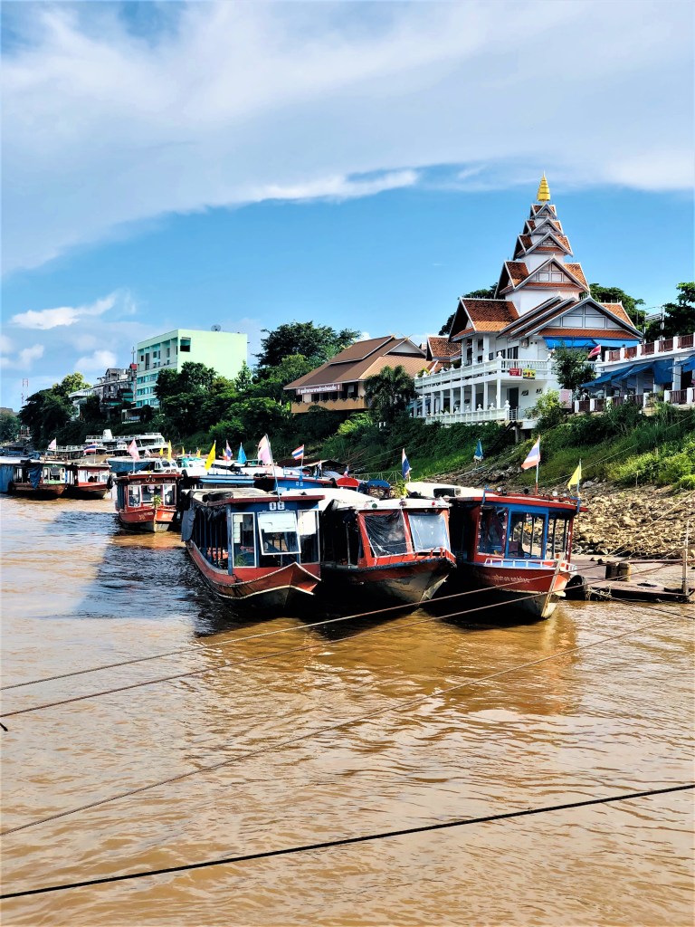 Golden Triangle – este punctul in care Thailanda, Myanmar si Laos sunt despartite de doua rauri care se intersecteaza si formeaza un tringhi. Insula micuta din mijlocul apei nu apartine niciunei tari, ea pe vremuri fiind folosita pentru vanzarea opiumului in schimbul aurului. De aici si numele de Golden Triangle. Pont: intrebati foarte clar daca excursia include plimbarea cu barca. Noi am aflat abea pe drum si a trebuit sa platim o diferenta. Plimbarea include si oprirea pe malul Laosului, insa zona in care stati este foarte bine delimitata, si nu vedeti mare lucru. Dar plimbarea in sine a meritat.