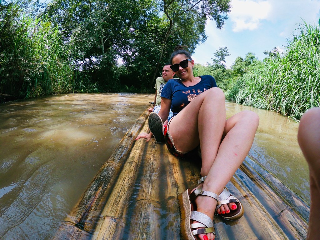 Ultima aventura, a fost cu “barcuta” de bambus. Am coborat pe un rau, aproximativ 40 de minute. Pentru cei care ajung acolo si fac asta, le recomand sa aiba schimburi la ei. In barca de bambus se sta in fund iar apa acopera picioarele.