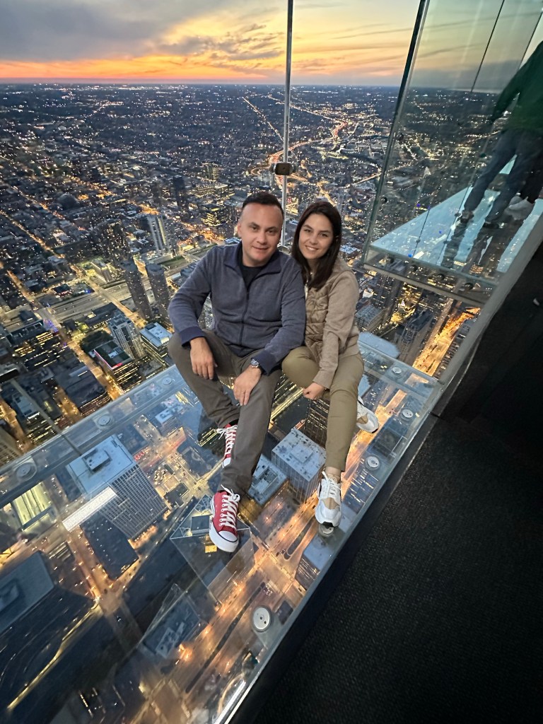 Skydeck – aici am avut putin de dezbatut, ce sa vedem Skydeck sau 360? Am intrebat pe la hotel, am citit, si am ales totusi Skydeck, este cea mai inalta platforma din SUA de la care poti admira orasul. Si ca de obicei, am ales sa merge in asa fel sa prindem si zi si noapte, inainte de apus. Timpul de stat pe platforma efectiv la poze este de 1 minut, insa va puteti reaseza la coada sa faceti poze de oricate ori doriti. Noi am stat de vreo 4 ori, de 2 ori pe zi si 2 pe noapte. Musai bilete luate online, pretul direct la ghiseu este mai mare. Pret bilete aici